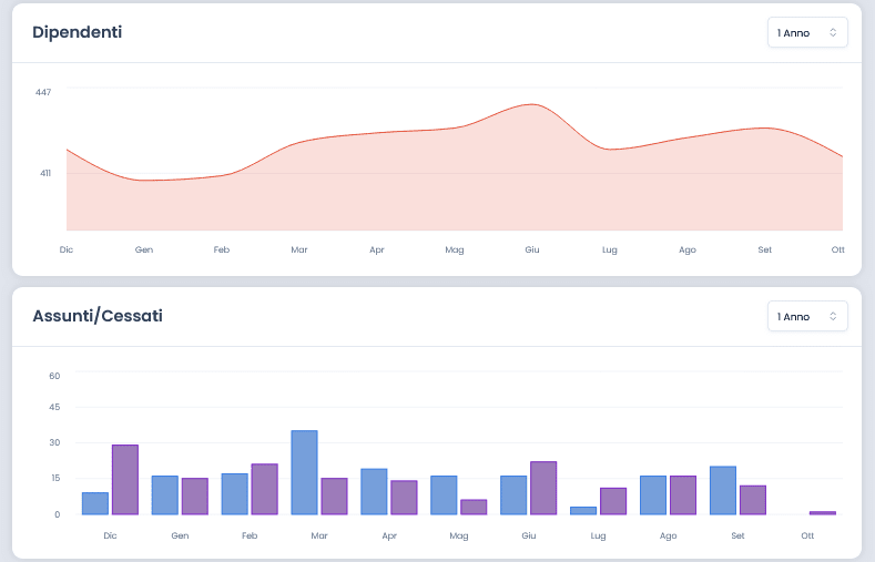 I grafici di Assunzioni/Cessazioni vi mostrano l’andamento storico e attuale. Intervenite proattivamente e pianificate l’organico con la massima chiarezza e anticipo.